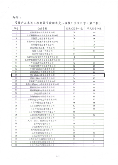 在公布的目錄中,河北高晶電器設(shè)備有限公司有45個(gè)油浸式型號(hào)入圍,這說明我公司自主研發(fā)的能效產(chǎn)品得到了國家政府部門的肯定,彰顯了我公司產(chǎn)品質(zhì)量和技術(shù)實(shí)力。